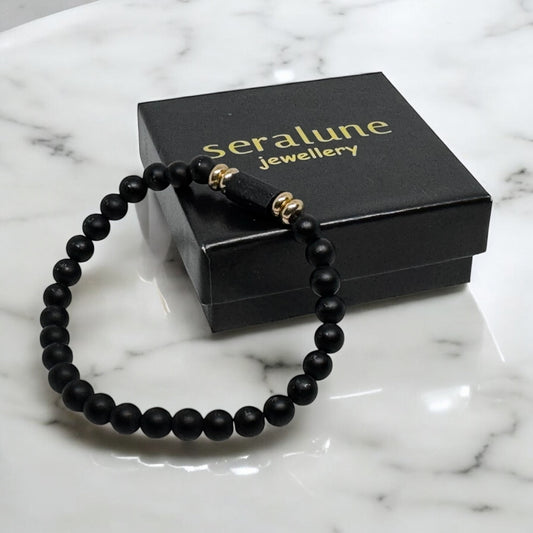 Bransoletka z Czarnego Turmalinu RAW i Onyksu Talizman Ochronny