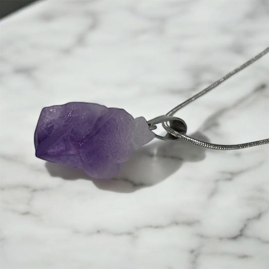 Naszyjnik Ametyst Bryłka Stal Nierdzewna Wisiorek