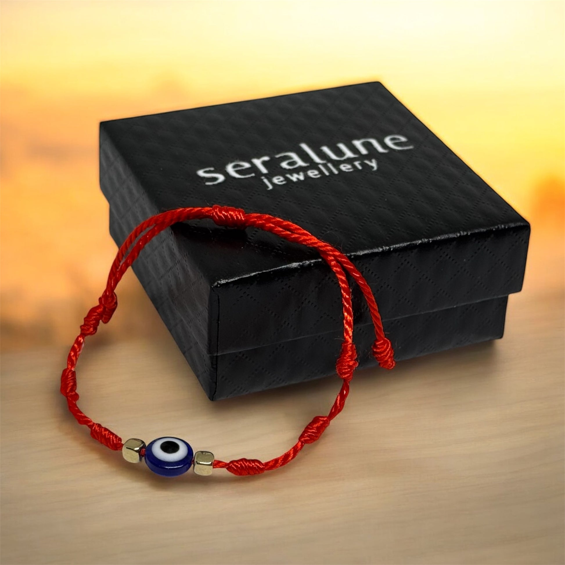 Nasza wyjątkowa bransoletka z czerwonego sznurka z siedmioma węzłami i okiem proroka to talizman, który ma na celu przyciągnięcie pozytywnej energii oraz ochronę przed negatywnymi wpływami.