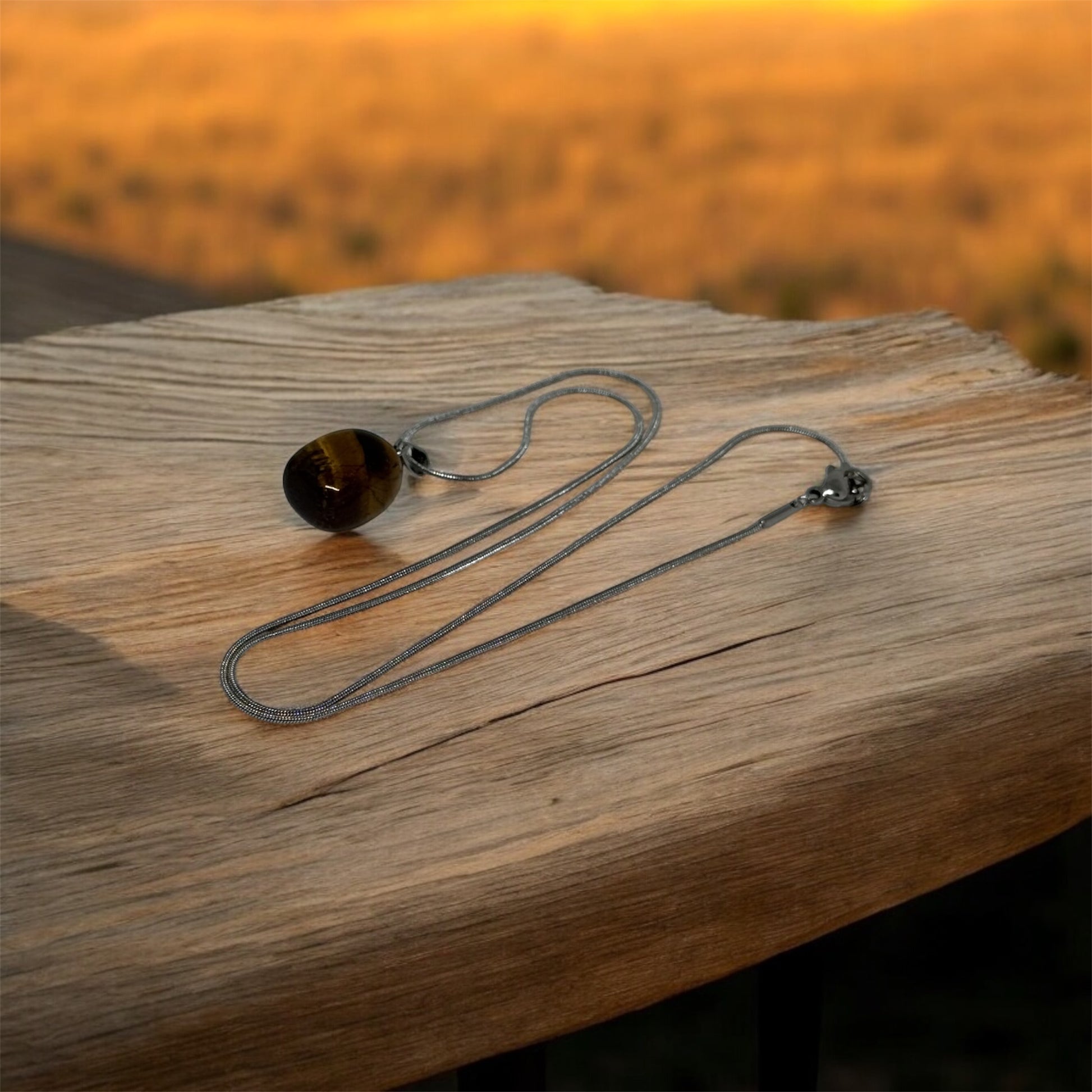 Naszyjnik Oko Tygrysa Kamień Stal Nierdzewna Wisiorek