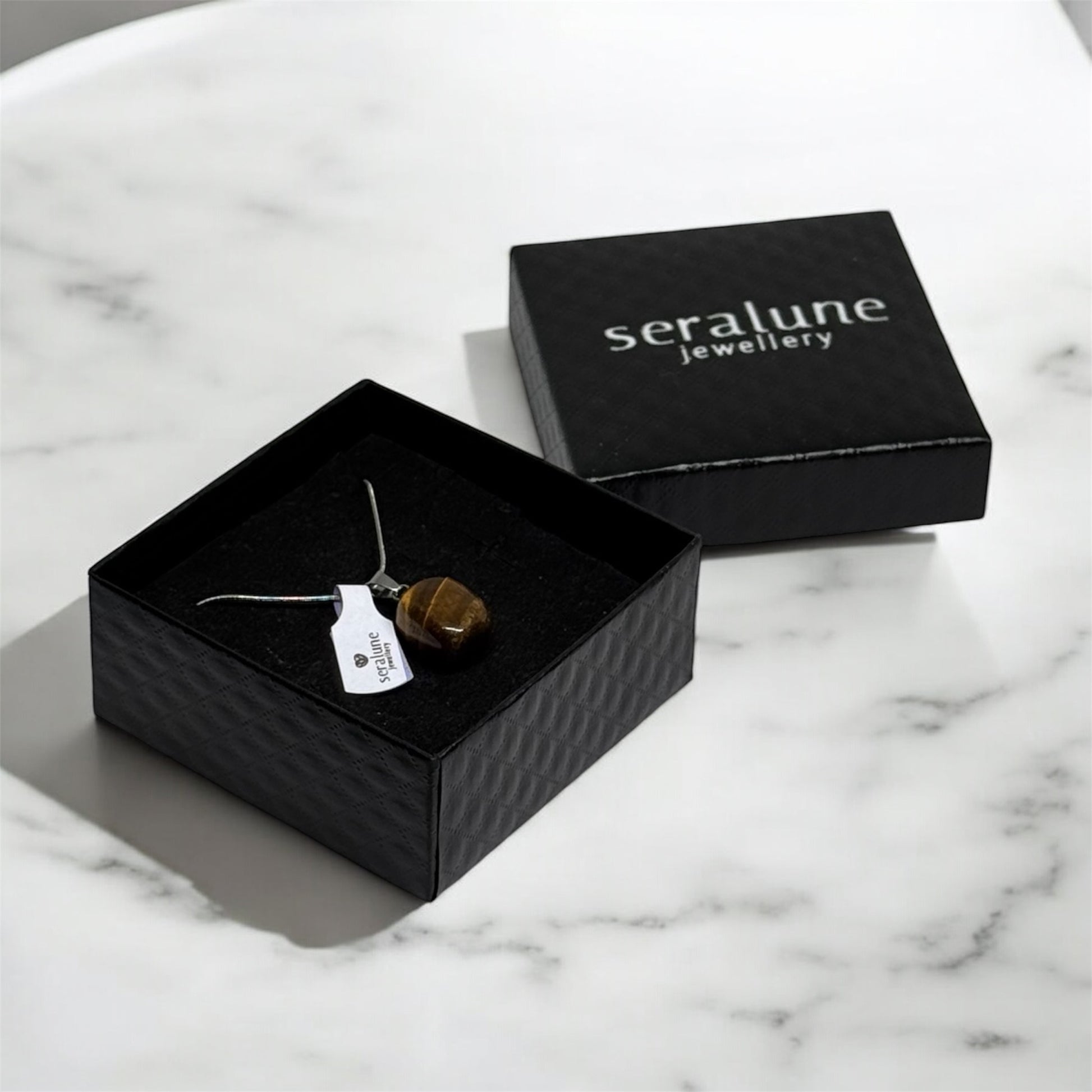 Dlatego każde zamówienie ręcznie umieszczamy w opakowaniu jubilerskim z logo Seralune oraz wklejamy kartkę z informacjami o kamieniach w wieczko pudełka